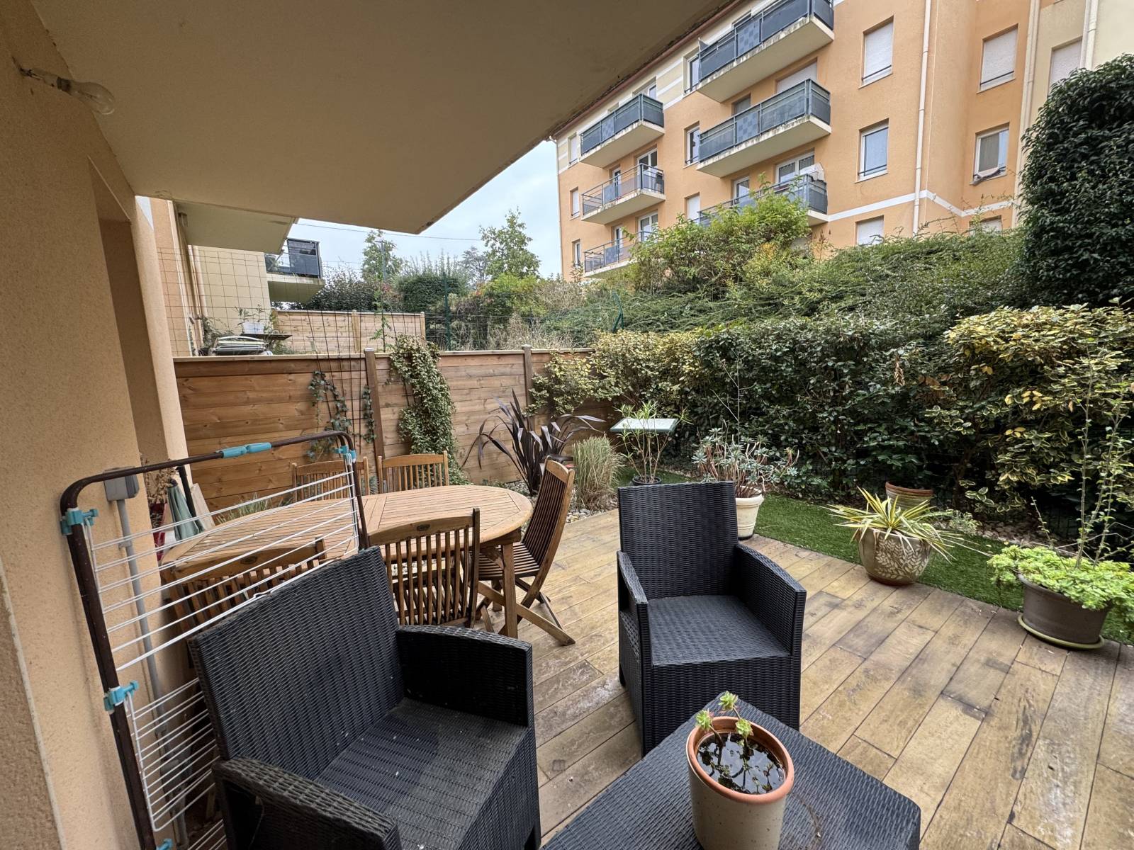 Il est composé d'une cuisine équipée ouverte sur la pièce à vivre, avec accès sur une terrasse bien aménagée.