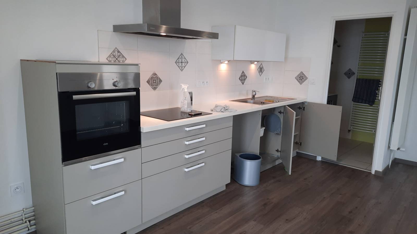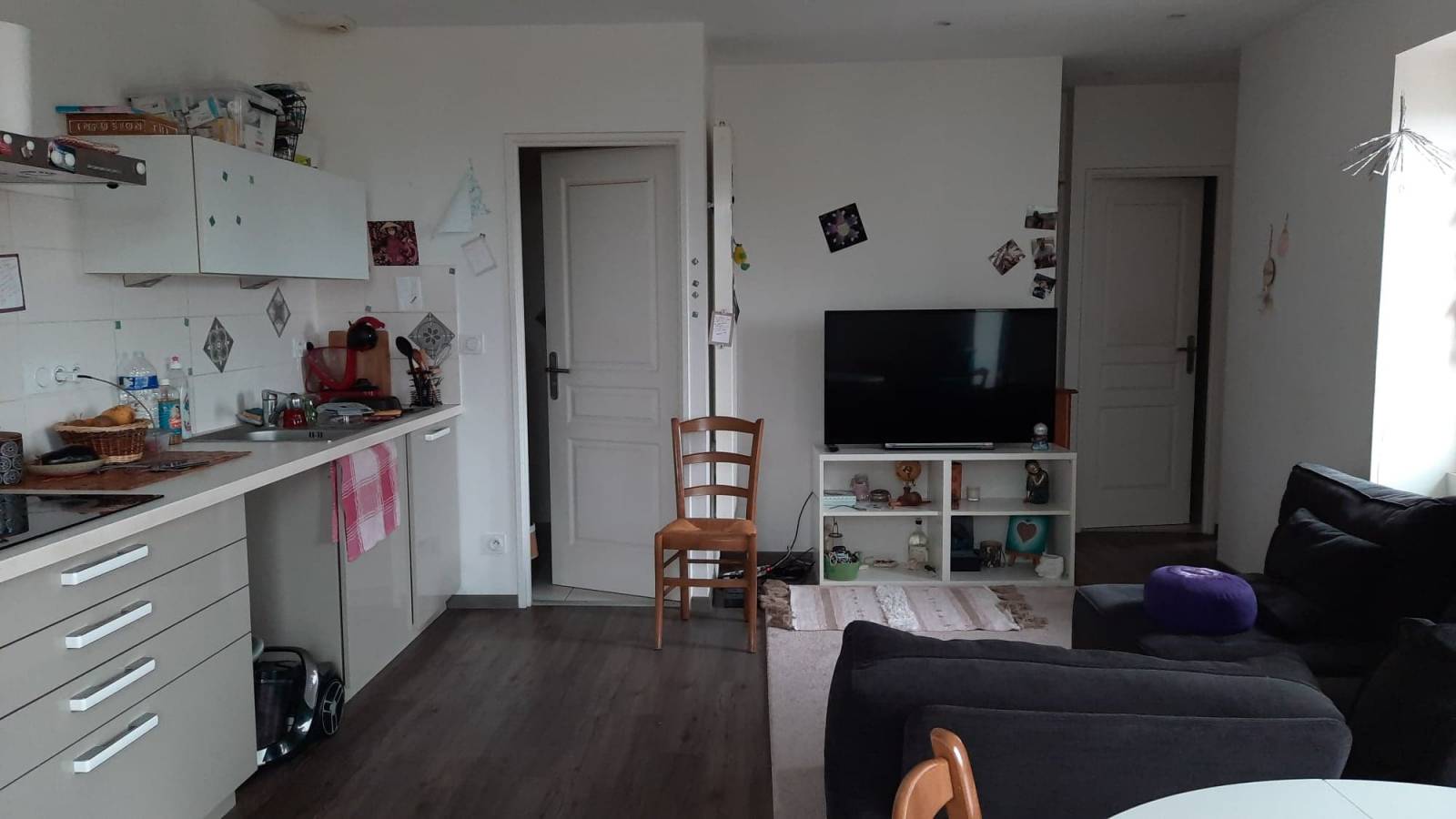 Il se compose d'une cuisine semi équipée (four, plaque et hotte) ouverte sur la pièce à vivre, une salle d'eau, 2 chambres dont une avec placard.