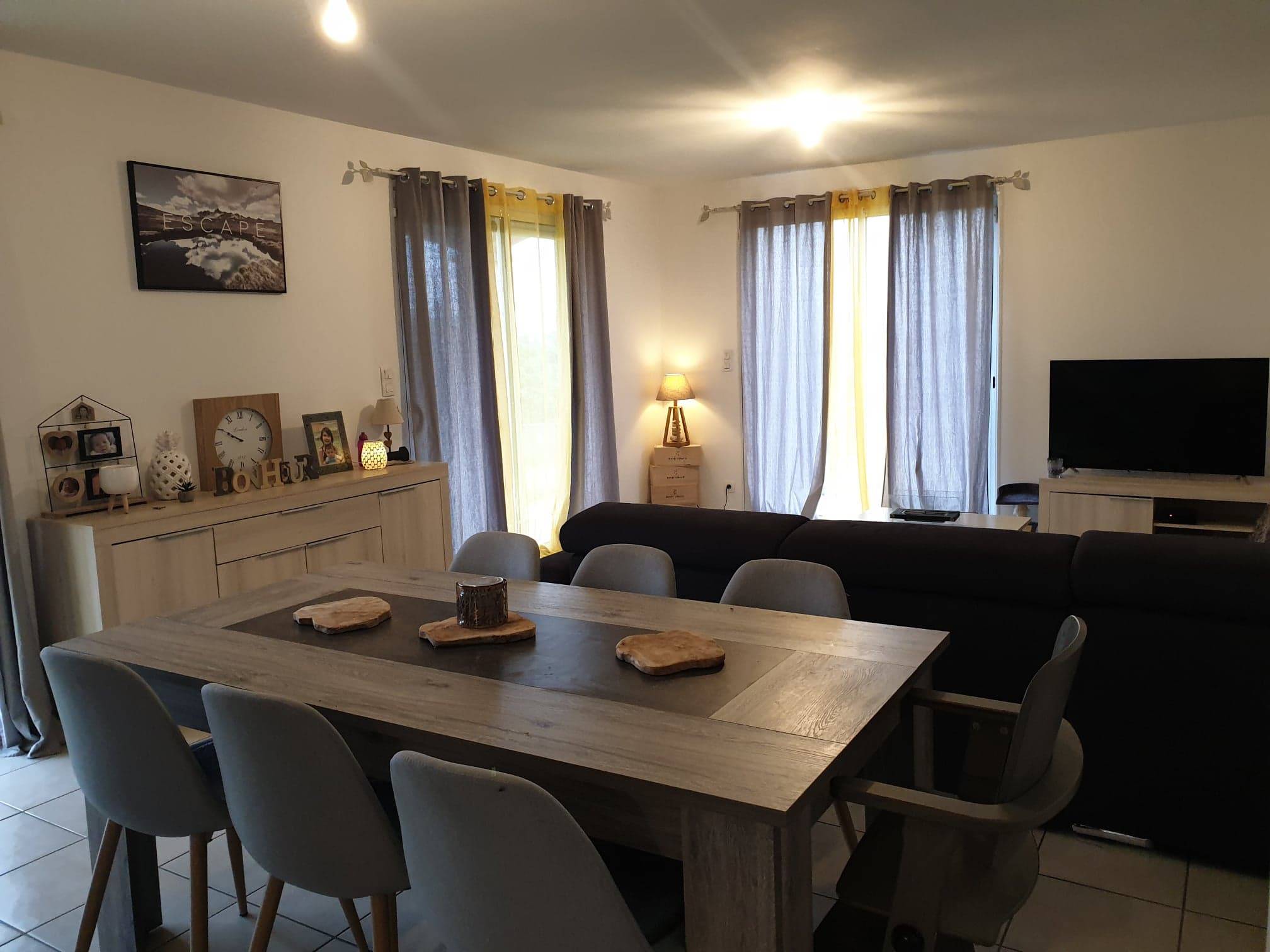 PEAUGRES - VILLA A LOUER au 1er juillet de 114 m² habitables environ sur 1200 m² de terrain environ. 3 chambres + bureau, cuisine ouverte sur le séjour. Garage attenant. Secteur calme et vue dégagée à proximité du village avec toutes les commodités.