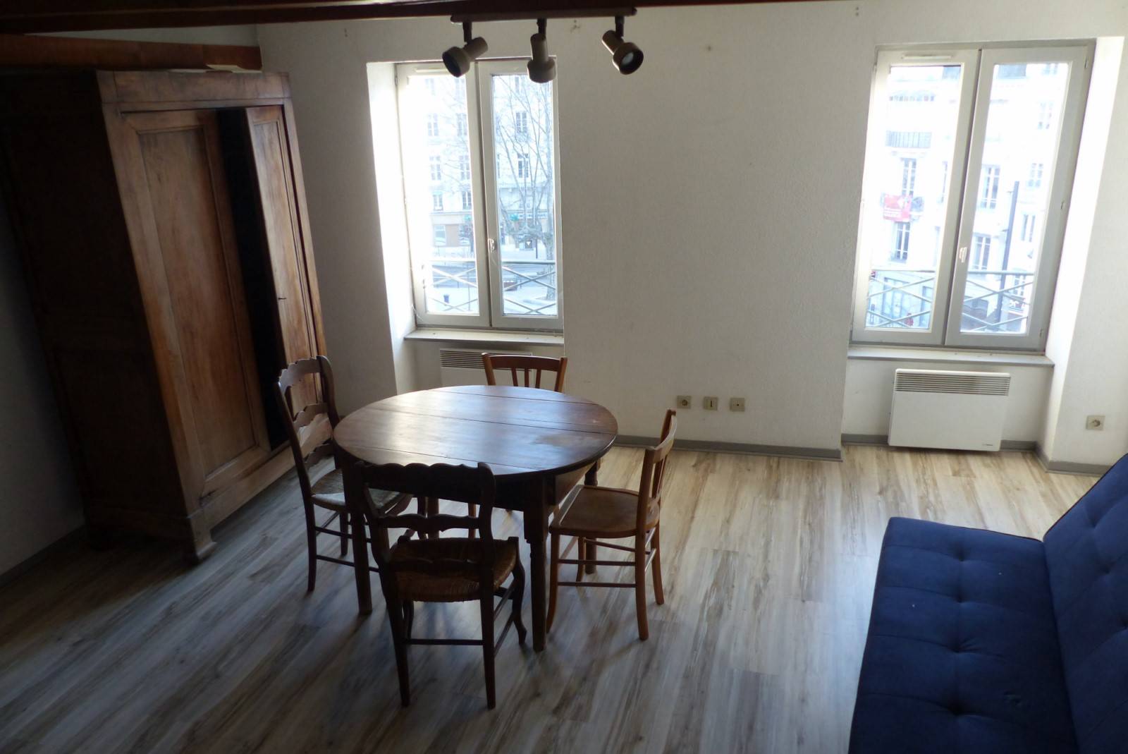 Vous aimez aller au théâtre, au cinéma ? Alors venez visiter ce petit duplex de 55 m² habitables environ offrant une jolie vue dégagée sur la place des Cordeliers. La pièce à vivre est très lumineuse car il est situé au 4 ème et dernier étage d'une petite copropriété avec ascenseur. En plein cœur de la ville avec des places de stationnement gratuites à proximité. Ce bien est équipé d'un réfrigérateur, d'un combiné four/plaques de cuisson dans la cuisine, d'une table ronde avec ses 4 chaises et d'une armoire dans le séjour et d'un lit dans la chambre mansardée.