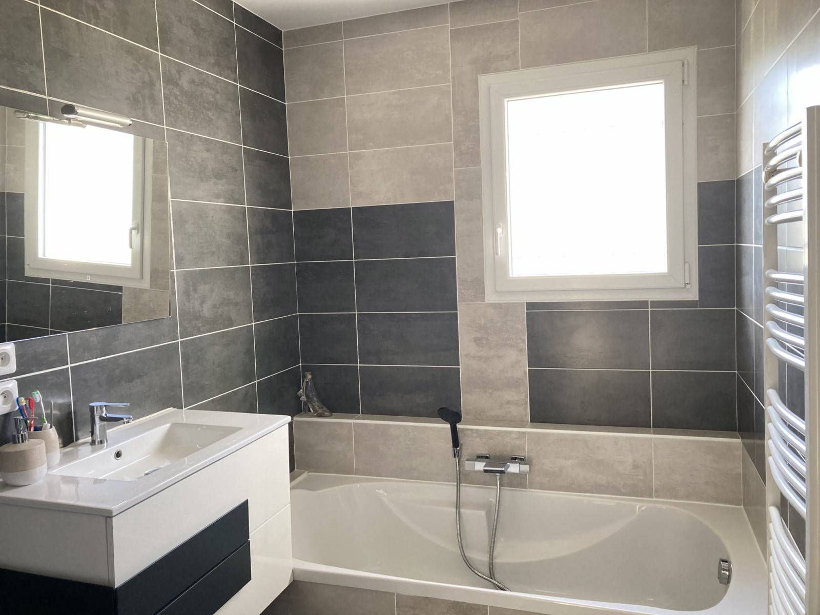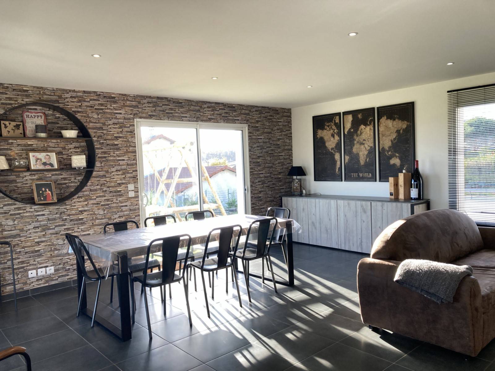 Cette maison très bien entretenue propose des prestations de qualité, chauffage au sol par aérothermie, menuiseries double-vitrage, porte de garage et portail motorisés, visiophone, alarme...